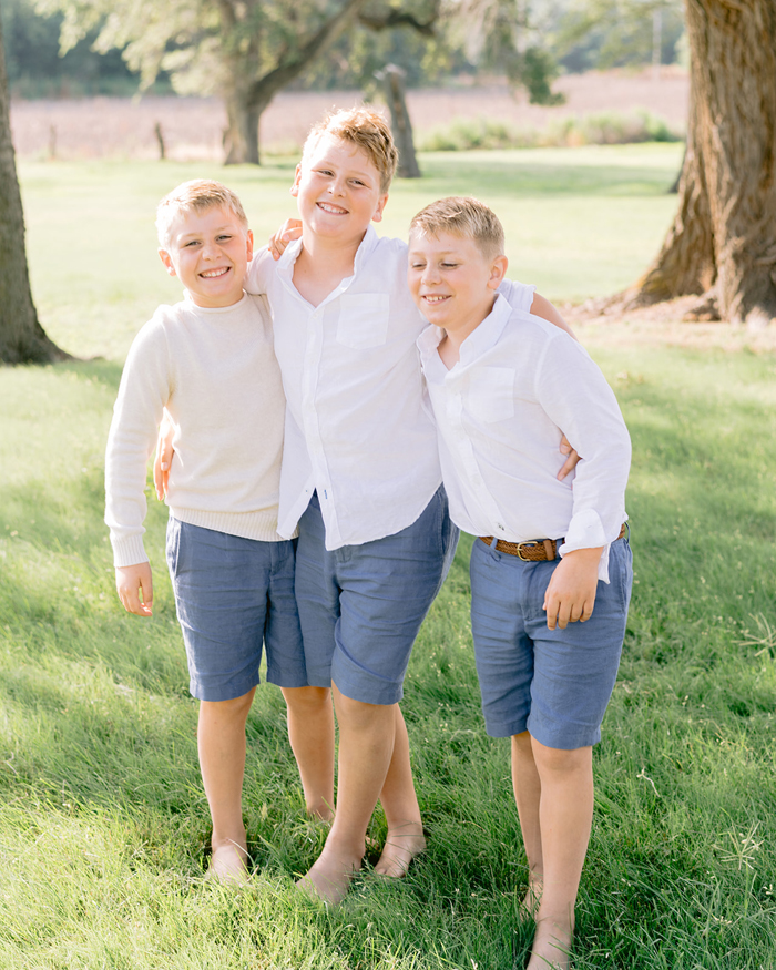 The boys were full of energy, laughter, and brotherly connection that came through so naturally in front of the camera. I loved watching them interact, teasing each other one minute and standing proudly together the next. Barefoot in the grass, they embodied the carefree joy of childhood spent outdoors.