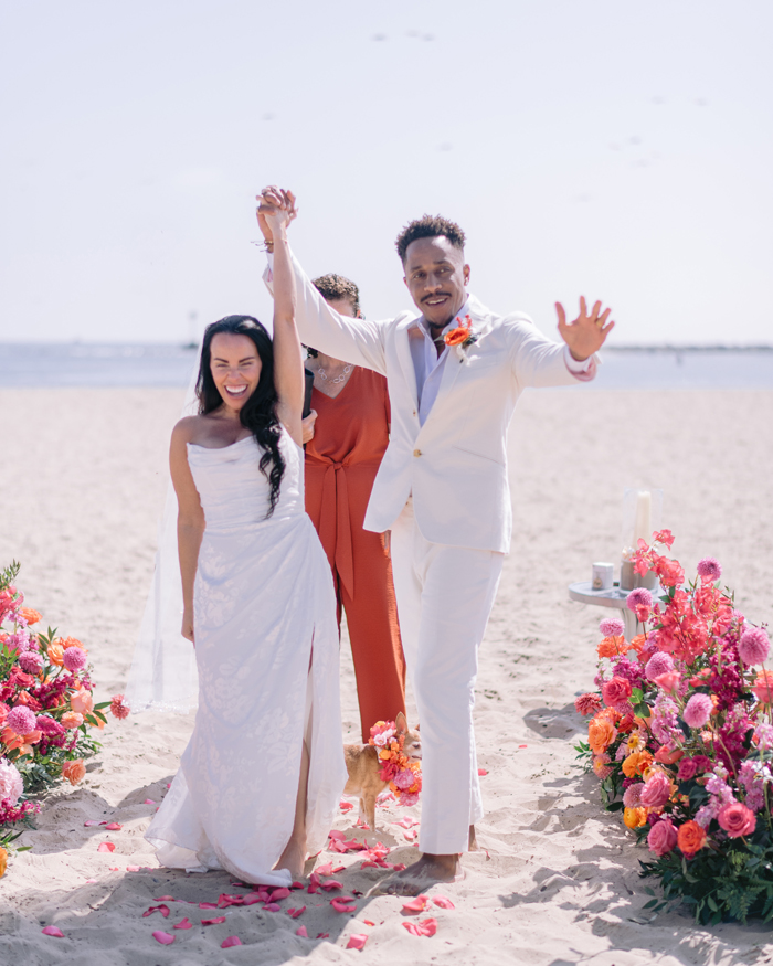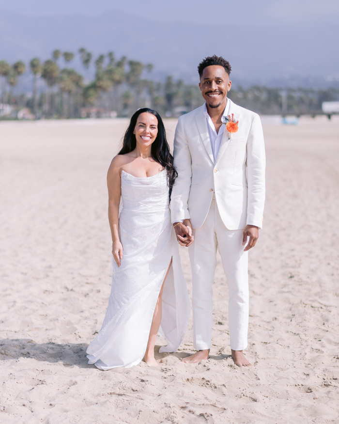 It was one of those perfect October days on the Central Coast—the kind where the light feels soft, the ocean air is warm, and every moment feels suspended in time. Barefoot in the sand, Erin and Jarred exchanged vows with the gentle rhythm of the waves behind them and the joy of their loved ones all around.